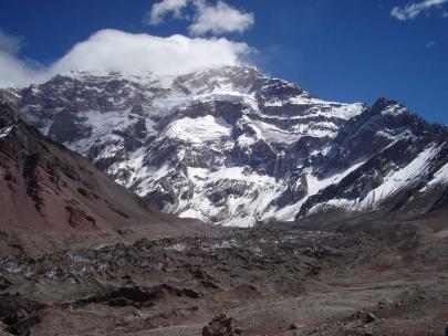 Desde la laguna de Horcones siguiendo una senda muy bien marcada llegaremos al puente que cruza el Río Horcones (puente construido durante el rodaje de la película “7 años en el Tibet”), y siempre por la margen derecha del rio accedemos al Campamento Confluencia. Luego desde aquí hacemos el ascenso por el día hasta Plaza Francia a 4.200 msnm pasando antes por el famoso mirador de la Pared Sur, lugar que te deja atónito al ver 2,7 km verticales de pared y glaciares que se entrelazan a su paso.